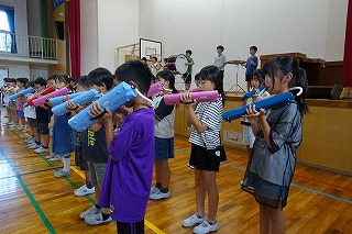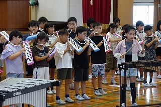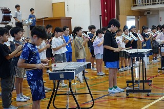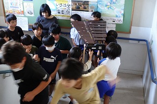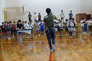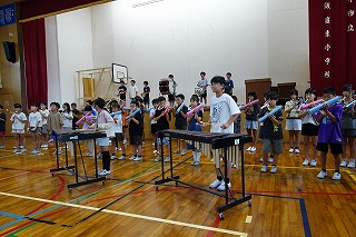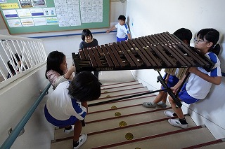 9月に入り、音楽会に向けて練習してきた4年生。学期のオーディションから始まり、パート練習、個人練習とみんなで一つの音楽をつくるために練習を重ねてきました。今日はいよいよ全体での練習のため、体育館へ学期を運びました。給食後、4年生で運ぶ予定だったのですが、通りがかりの6年生が何も言われずとも手伝ってくれました。4年生がすることだからとでしゃばることもなく、その姿にも感心しました。さて、楽器を運ぶことも初めての経験です。自分が使う使わないは関係なく、力を合わせて重たい楽器をぶつけないように慎重に運びました。6時間目に、いよいよ体育館での全体練習を行いました。先生の指示を聞き、指揮する先生の手を見つめ、音を奏でます。しかしまだまだ初めての練習ですから、全員の眼差しが一つにはならず、音もそろわないところがあります。しかし、取り組み始めてからおよそ3週間、予想以上のできに感心しました。きっとみんなで音を出すことで気づくこともあります。これからさらに気持ちもそろってくることでしょう。まずは10月19日の校内発表会に向けて頑張ってください。