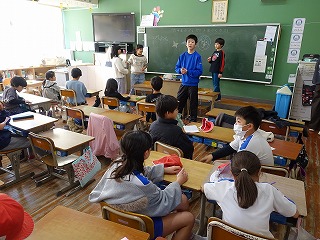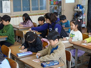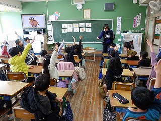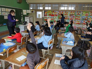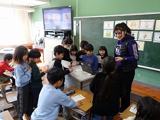 いつもと違う子どもたちの声が廊下に響いてきます。というのも、いつもは3年生以上と外国語の勉強をしているALTの先生が、今日は1年生2年生と勉強する日だったからです。1年生は大盛り上がり、動物の英語での呼び方を教えてもらいました。子どもは耳がいいですね。大人よりもすぐに英語の発音が入ってくるようです。動物の呼び方を覚えた後は、ビンゴゲームをしました。2ビンゴそろうと、ALTの先生から素敵なシールをもらいました。2年生もとっても盛り上がっていましたが、やっぱり1年生に比べると、落ち着きが違いました。たった1年の違いですが、さすが先輩です。低学年の何でも吸収するこの時期に、外国の人とふれあい、言葉を知って表現し、親しみをもつことは大切だと、子どもたちの姿を見ながら感じることができました。