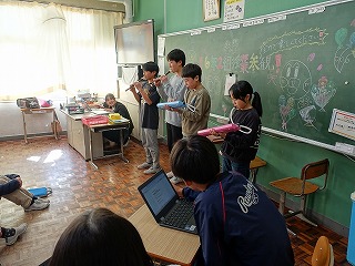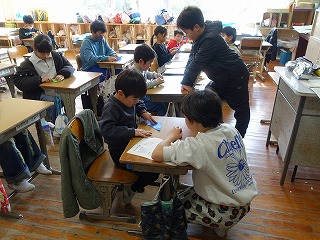 卒業する6年生へと、5年生が頑張っています。今日は、縦割り活動で6年生への贈り物の準備をしました。1年生から5年生までのみんなで準備するのですが、その世話をするのが5年生です。下学年生の世話もですが、贈り物の準備も大変です。今日は優しく下学年と接する5年生の姿にとても感心しました。5年生のみなさん、どうぞよろしくお願いします。