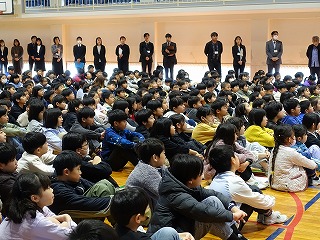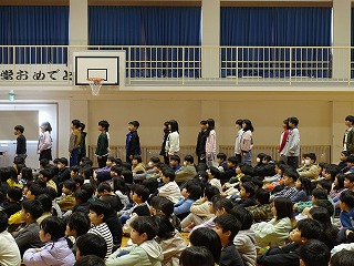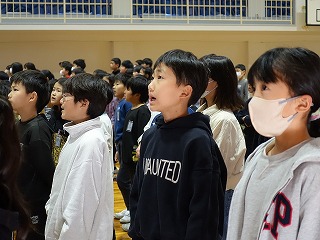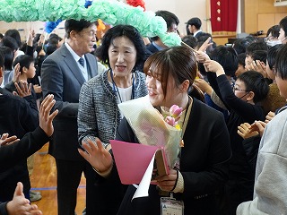 年度末、ばたばたの日々で学校ホームページの更新が遅くなりました。3月24日、修了式と離任式を行いました。6年生がいない修了式は少し寂しい感じでしたが、職員側に座った4年生の姿勢が素晴らしく、もうすでに高学年としての意識がよく表れていました。5年生から1年生へと修了証書を渡しました。担任の先生から学級名を呼ばれると、大きな声の返事とともに全員が起立し、代表の子どもの動きに合わせて礼をします。どの学年・学級も気持ちが入った返事がとても立派でした。児童代表の言葉では、1年生と4年生が発表しました。今年度の頑張りと来年度の目標を堂々と述べ、この一年間の成長を見ることができました。離任式には卒業した6年生も出席し、これまで飯盛東小の子どもたちのためにご尽力いただいた先生方との別れを惜しみつつ、お見送りました。最後に歌う校歌は、今年一番の素晴らしい歌声でした。今年度は8名の先生方とお別れでした。他の学校へ移られる先生がほとんどですが、長い教員生活をこの飯盛東小学校で終えられる先生もいらっしゃいました。春は別れと出会いの季節です。4月に入れば、また新しいメンバーで子どもたちを迎える準備が始まり、忙しい日々が続くのですが、3月のこの時期はやはり寂しい気持ちになります。さて、保護者の皆さまには、令和7年度も本校の教育活動へご理解とご協力をいただきまして、本当にありがとうございました。令和8年度も職員一同、「やってみよう!できる できる できる!」と子どもたちを応援しながら、みんなで「楽しい」をつくる元気な学校にしていく所存です。どうぞよろしくお願いいたします。