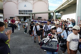 6年生が、10月2日(吉野ケ里遺跡・大観峰・エルパティオ牧場)、3日(グリーンランド)に修学旅行へ行きました。下学年全員がお見送りしてくれるのは恒例のことですが、やっぱりみんなにお見送りしてもらうのはうれしいことです。1年生の中には、6年生の出発する様子を見て、寂しく思う人もいたそうです。幸い1日目は天候に恵まれました。修学旅行の様子を2日間に分け、写真でお知らせします。