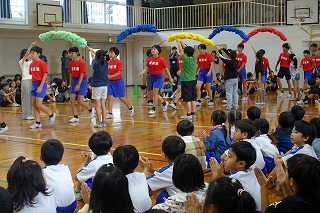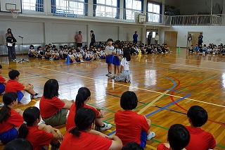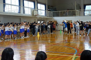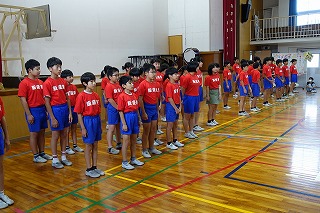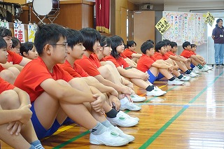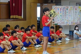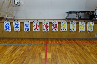 朝の全校集会で、小体連壮行会が行われました。4年生が花のアーチを持ち、下級生みんなの大きな拍手の中、ユニフォームを着た6年生が少し緊張した面持ちで入場してきました。2年生のはじめの言葉のあと、5年生がリーダーとなって一生懸命練習してきた応援です。とっても大きな声で、振りで、元気いっぱいの応援ができました。きっと、小体連で出場する6年生を後押しする大きな風になることでしょう。この壮行会はそれぞれの学年が一役を担い作り上げたものです。1年生は壮行会の題字をつくりました。文字の上下には6年生一人一人の絵が貼り付けられています。2年生ははじめの言葉とおわりの言葉、3年生はプログラム。4年生はアーチ持ち。そして5年生が応援です。みんなの応援を受けて6年生はとってもうれしかったと思います。さあ、来週の火曜日が本番です。週末から気温がまた下がるようです。6年生のみなさん、体調面もしっかり整え、これまでの自分を乗り越えられるように頑張りましょう!