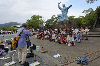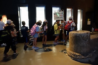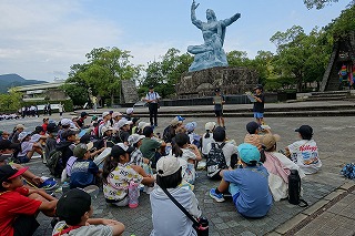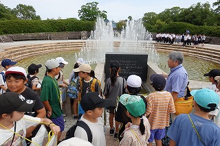4年生が長崎市へ平和学習と科学館見学に行ってきました。平和学習では、平和公園で行った平和集会では、全校のみんなで折った千羽鶴を平和への願いを込めてささげました。そのあと、被爆遺構の刑務所跡や平和の泉、防空壕を見学し、原爆資料館へ行きました。秋の修学旅行シーズンです。原爆資料館は修学旅行生や外国からの旅行者でいっぱいだったのですが、4年生は見学のマナーを守り、静かに展示された資料を見てメモを取り熱心に学習していました。原爆資料館の後は爆心地公園に行き、そこで見られる被爆した状況を見ることができる地層を見学しました。平和学習の最後は城山小学校です。当時としては珍しい3階建ての白いモダンな校舎は爆心地からわずか500mの距離だったため、そのほとんどが崩壊し、焼失しました。もちろん被害は建物だけでなく、1400人もいた児童のほとんどや職員などの尊い命が失われた場所です。今も残る被爆校舎は城山小学校平和祈念館になっています。同じ小学生として、子どもたちは感じるものが多かったようです。帰校後の到着式で子どもたちが感想を発表したのですが、その中でも触れられていました。平和学習の後は長崎市科学館に行きました。科学館は貸し切り状態で、展示室・プレイゾーンでは様々な科学の不思議を楽しんでいました。特に、科学実験教室は大盛り上がりでした。また家族で来たいな!とつぶやく子どもも多かったです。さて、早朝よりお弁当の準備をありがとうございました。お弁当がおいしくて、うれしくて、にこにこ笑顔で食べていました。まだまだ日差しが強く暑い一日でしたが、さすが4年生です。約束をしっかり守って、安全で学びも楽しいもある学習を行うことができました。
