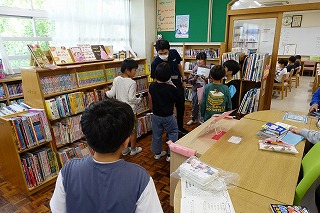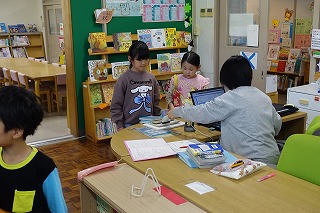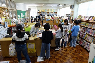 2年生が図書室に行っていましたのでついていきました。借りる本を選んでいるのですが、いつもと少し様子が違います。なるほど、図書委員会プレゼンツの「本の題名しりとり」で本を選んでいたのでした。図書支援員の先生にも説明してもらい、どのように本を選べばいいのかが分かると、本の題名でしりとりですから普段手に取らない本を選ぶことになります。なるほど、図書委員会さんよい考えですね。さて、読書週間の期間中、本の題名しりとりが何冊続くのか楽しみです。