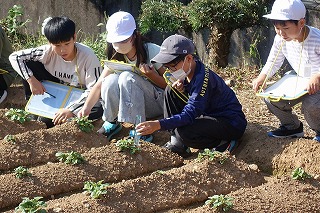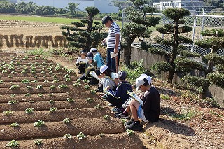 プール横の畑に植えた種芋から元気な芽が出てきていました。5年生が早速観察にいきました。定規で背丈を計ったり、葉や茎の様子の絵を丁寧に書いたりしました。知っているようで知らないことがいっぱいあります。飯盛が誇るじゃがいものことです。たくさん学んでほしいと思います。