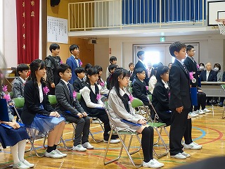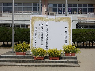 「別れの日は来る」これまで東っ子みんなのために力を尽くしてきてくれた6年生の卒業の日を迎えました。式場や卒業生の教室は4年生、5年生の頑張りで、きれいに整えられ、お祝いの気持ちあふれる式場、教室になりました。式はたくさんの地域の皆様に見守られ、厳粛な中に、子どもたちの元気がみなぎるよい卒業証書授与式でした。晴天にも恵まれ、PTAに設置していただいた特大卒業証書の前は長蛇の列が続きました。今日この時は、飯盛一番の映えスポットになっていたと思います。42名の卒業生のみなさん。ご卒業おめでとうございます。