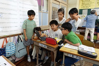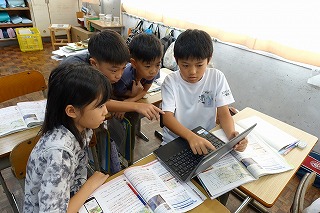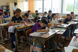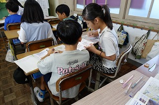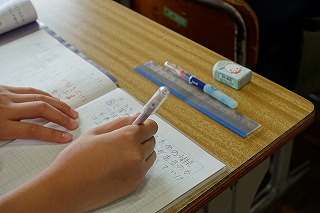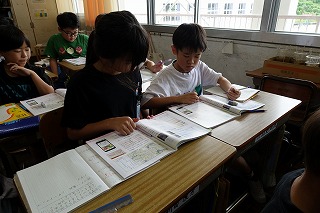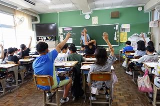 4年1組で「災害から人々を守る活動」についての学習を見ました。これは、初任者の先生の研修の一環で先輩教師が授業を見せるという取組です。4年生は昨年度に専科として理科を教えていたので、授業の中で子どもたちの成長が見て取れ、とてもうれしく思いました。防災について、身近な問題であり関心が高いこともあるでしょうか、人の話を聞く態度や反応、発表を譲り合いスムーズに発表を重ねる姿など感心しました。特に、黒板に書いてある問題やめあてなどをノートに書きうつす速さと丁寧さはさすがでした。きっと、初任の先生は大いに参考になったと思います。授業では災害をどのような媒介から情報を得るのかというテーマで進んでいきました。後半は、先生から自分たちの住む地区のハザードマップや防災マップがあることを教えてもらい、地区ごとに分かれて実際にマップを見ました。この時間に学んだことは大切なことなので、家族で確認して命を守りたいという意識を高めた子どもたちでした。