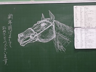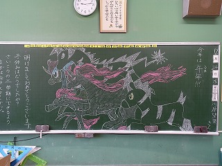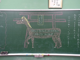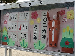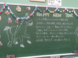 東っ子たちの3学期が今日スタートしました。学校は子どもたちが登校してくるのを今か今かと待っていました。正面玄関の掲示板、校舎内の掲示スペース、各教室には先生たちの力作(写真は一部)が子どもたちを出迎えました。薄暗く寒いスタートの日となりましたが、子どもたちは元気元気!教室に入って荷物を置くと、一目散に運動場に出てきて遊ぶ子がいつものようにいっぱいでした。1年生はみんな出てきて、6年生や新1年生のためにと植えたパンジーとチューリップに水やりです。子どもたちの元気をもらってこちらも元気になります。