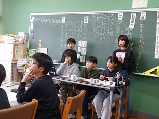 今日のHLMの議題は「6年生を送る会」についてでした。ですから、6年生はいません。そして、新たに3年生の代表が話し合いに加わりました。これまで何についても6年生が支えてきました。今日は、その支えの頼もしさを、特に5年生は感じたのではないでしょうか。さて、そう言いつつも、実際の話し合いでは、5年生だけでなく、4年生も3年生も下級生のことを考えた発言が目立ち、感心しました。「みんなで楽しいをつくる元気な学校を目指そう!」と言っていますが、「楽しい」とは何かイベントがなくては味わえないものではありません。みんなでつくる「6年生を送る会」、その中で、下級生が困らないようにと思いやることこそ、下級生の「楽しい」をつくっているのではないかと思います。また、話し合いの柱3は各委員会からの連絡です。前にも述べたかもしれませんが、これほど委員さんが発言する代表委員会は経験がありません。6年生がいない今日も、5年生がしっかりその役を果たし、全ての委員会さんが発表しました。運営委員会の5年生のみなさんは特に大変だったと思います。みなさんの頑張りでよい話し合いができました。ありがとうございました。最後に、話し合いの中で「6年生への感謝」という言葉が出てきました。ぜひ、その思いを大切に、これから「6年生の送る会」の準備をしていってほしいと思います。同時に、6年生へどんな感謝があるのかを具体的に思い出したり、思い返したりしてほしいです。目に見えることだけでない、6年生の頑張りがこの1年の間にいっぱいあります。