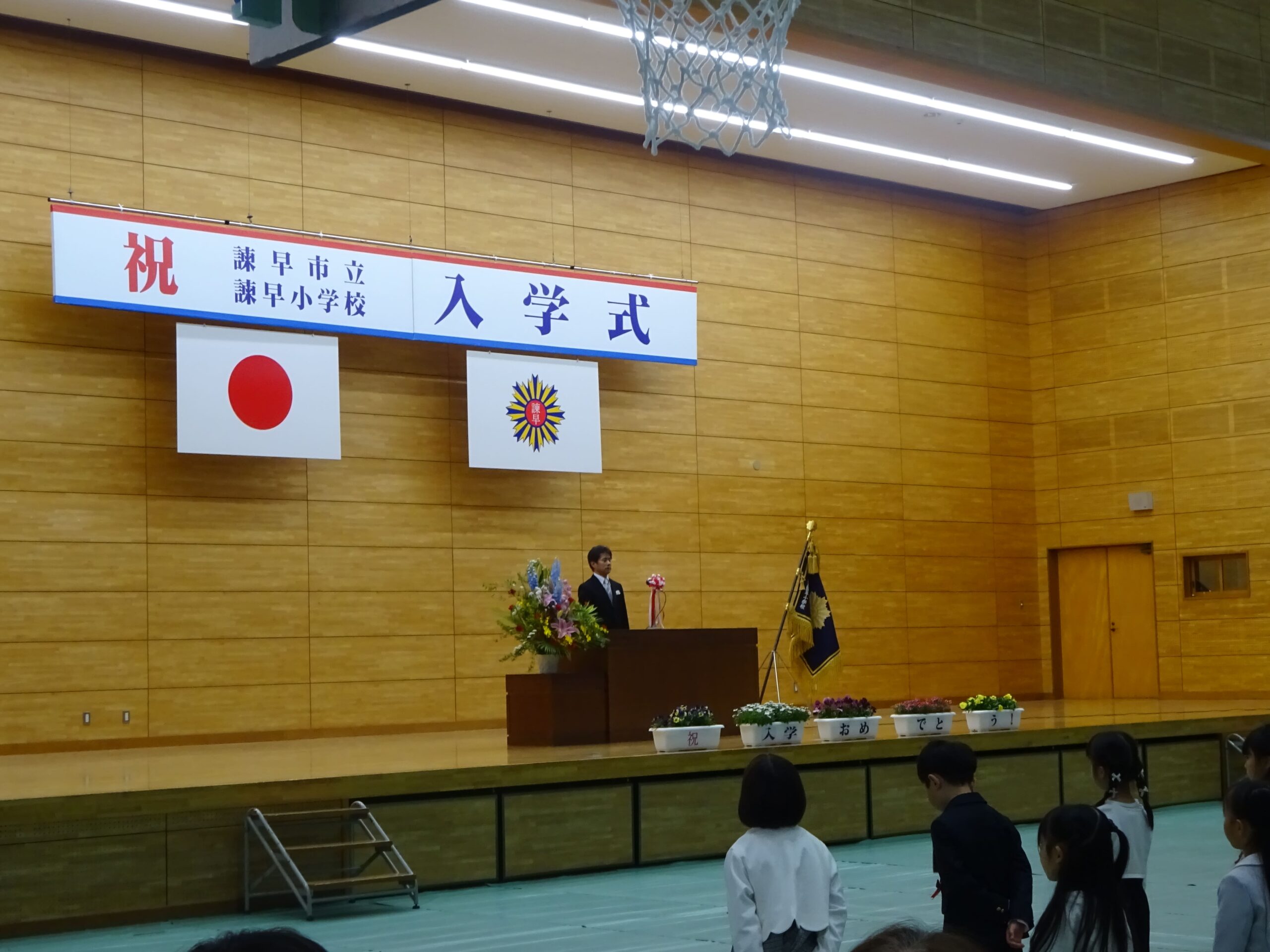 4月10日(金)に、諫早小学校の入学式が行われました。今年度は、64名のピカピカの1年生が、入学しました。小雨が降る中ではありましたが、新入生は晴れ晴れとした笑顔で式を迎えました。これからの学校生活が楽しみですね。