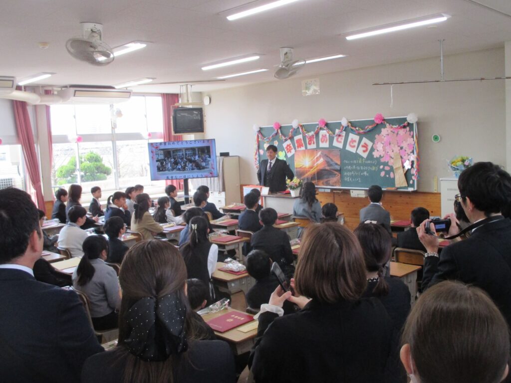 最後の学活では、子どもから保護者へ。また保護者から子どもへの手紙を渡すなど、泣いたり笑ったりの時間を過ごしました。6年間の学びを土台に、中学校でも大きく羽ばたいてほしいと思います。