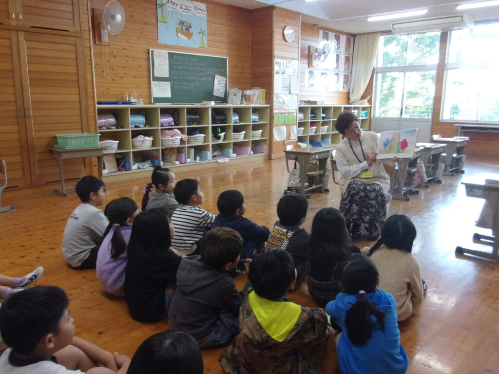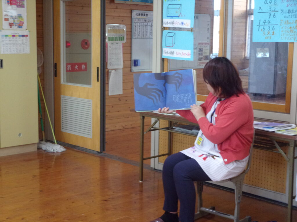 10月27日から11月9日まで読書週間です。本校においても、いつも以上に読書に取り組もうと様々なイベントが行われています。今日は、図書ボランティアの皆様が絵本の読み聞かせをしてくださいました。みんな、楽しみにしていたので、いつもより早く登校し。学年に応じた内容の絵本を読んでいただきました。本を読んでもらった後は、もっと読みたくなる子が続出し、本がもつパワーを改めて感じました。御家庭でもたくさん本の話をしてくださいね。