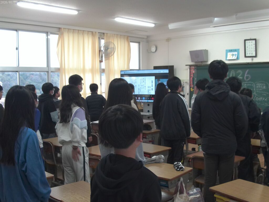 3学期がスタートしました。2学期末は、学級閉鎖が続きましたが、子供たちが元気に登校する姿を見て安心しました。 始業式は、感染症対策のためリモートで行われました。代表の子どもたちが、3学期の目標を上手に発表しました。 1学期、2学期と比べて短い3学期ですが、目標をもって前へ進んでいってほしいと思います。 職員一同、力を合わせて取り組んでいきます。本年もよろしくお願いします。 投稿者プロフィール 投稿者 最新の投稿 お知らせ2026年1月8日3学期始業式 イベント2025年12月24日2学期終業式 イベント2025年11月6日1年生 いもほり お知らせ2025年11月6日2年生 まちたんけんに行きました