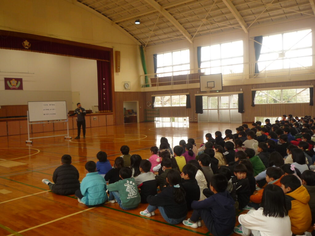 24日(火)第3回目の避難訓練を実施しました。3回目は「不審な人が学校に侵入、さあどう対処するか」について、子ども達だけでなく、職員も一緒に考えながらの訓練でした。訓練を通して改めて、私たちは子どもの命を守るためにどうしなければならないか、子ども達は自分の命を守るためにどう行動すべきかを考える機会となりました。講師としてお招きした、長崎県防犯ボランティアグループの田中さんからは、学校内においても、地域の中でも、進んであいさつを交わすことが一番の防犯になることを教えていただきました。
