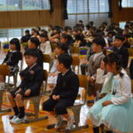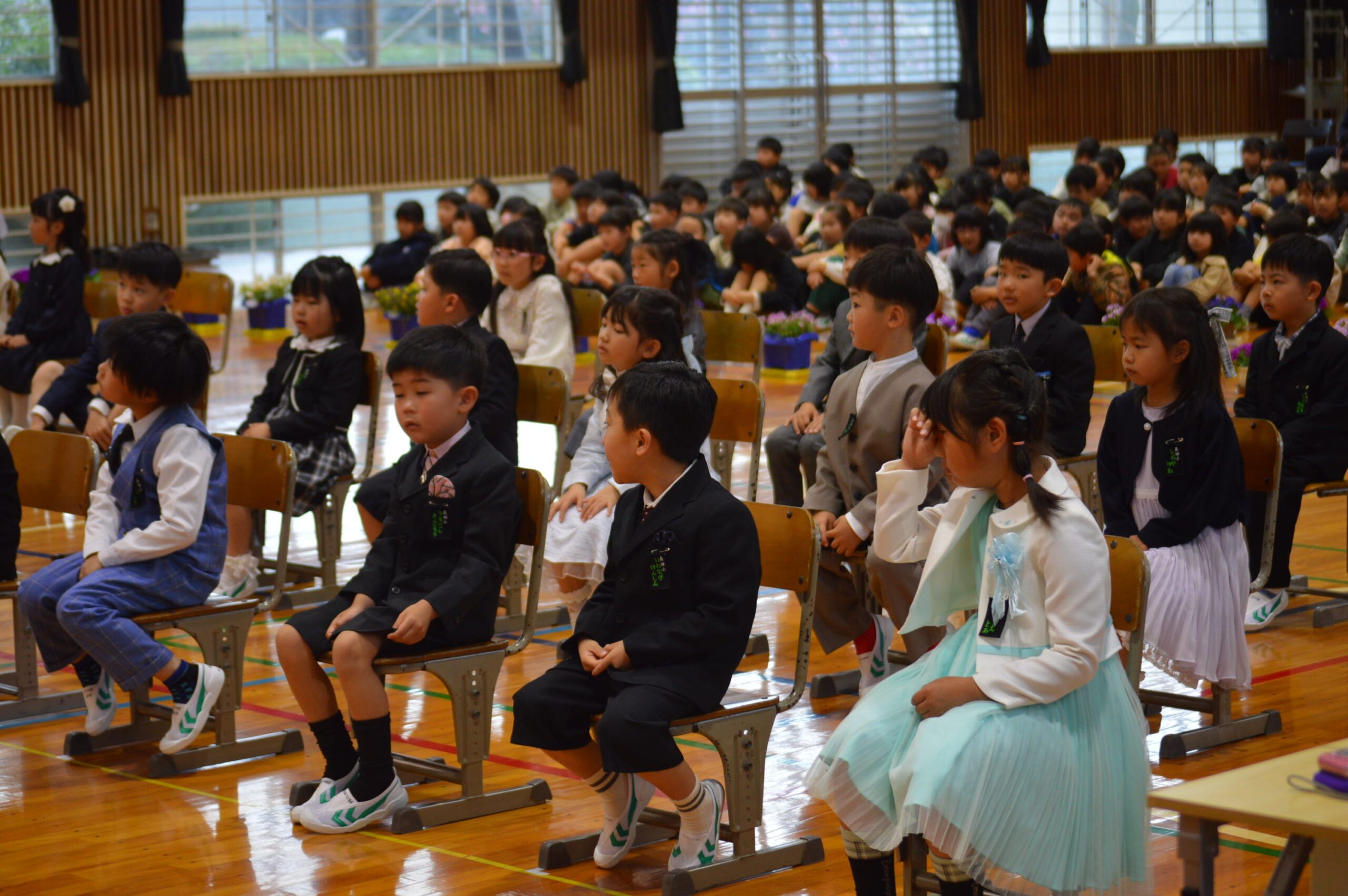 4月10日に入学式があり、40名の新入生が入学しました。元気よく返事をしたり、良い姿勢で話を聞いたりすることができました。やる気いっぱいの1年生です。