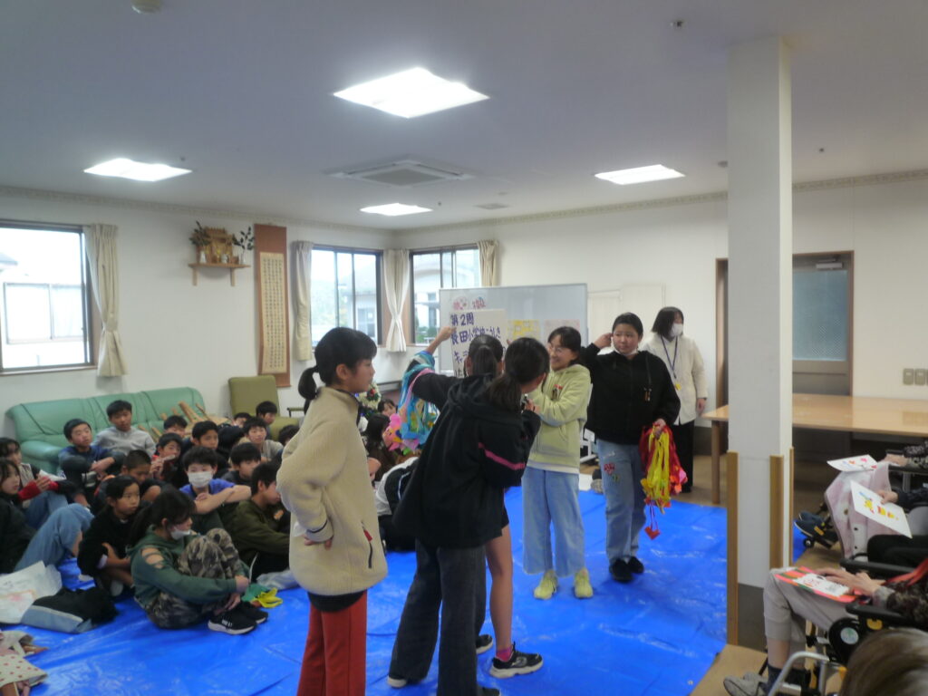 11月28日(金)に6年生が「ゆたか荘」を訪問し、入居されている皆様とゲームやクイズなどで交流をしました。直接の交流は実に7年ぶりです。最初は緊張が見られた子ども達でしたがだんだん慣れて、盛り上げていました。ゆたか荘の皆様も喜んでいただき、子ども達も成長することができました。これからもよろしくお願いします。