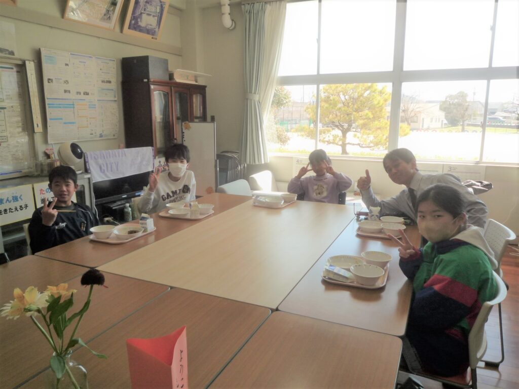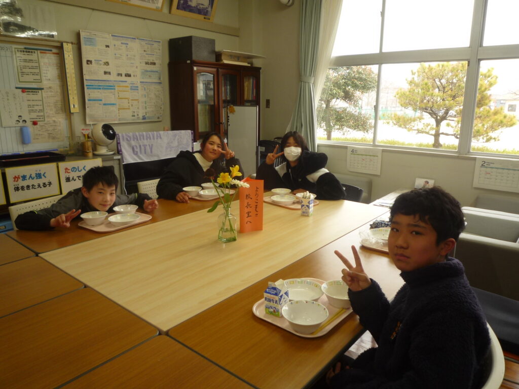 6年生の子ども達と給食会食を今週から始めました。各学級4~5名ずつ校長室に招き、給食を一緒に食べています。話題は小学校生活の思い出、将来の夢などです。少人数でゆったりと話す時間はとても貴重なひとときです。