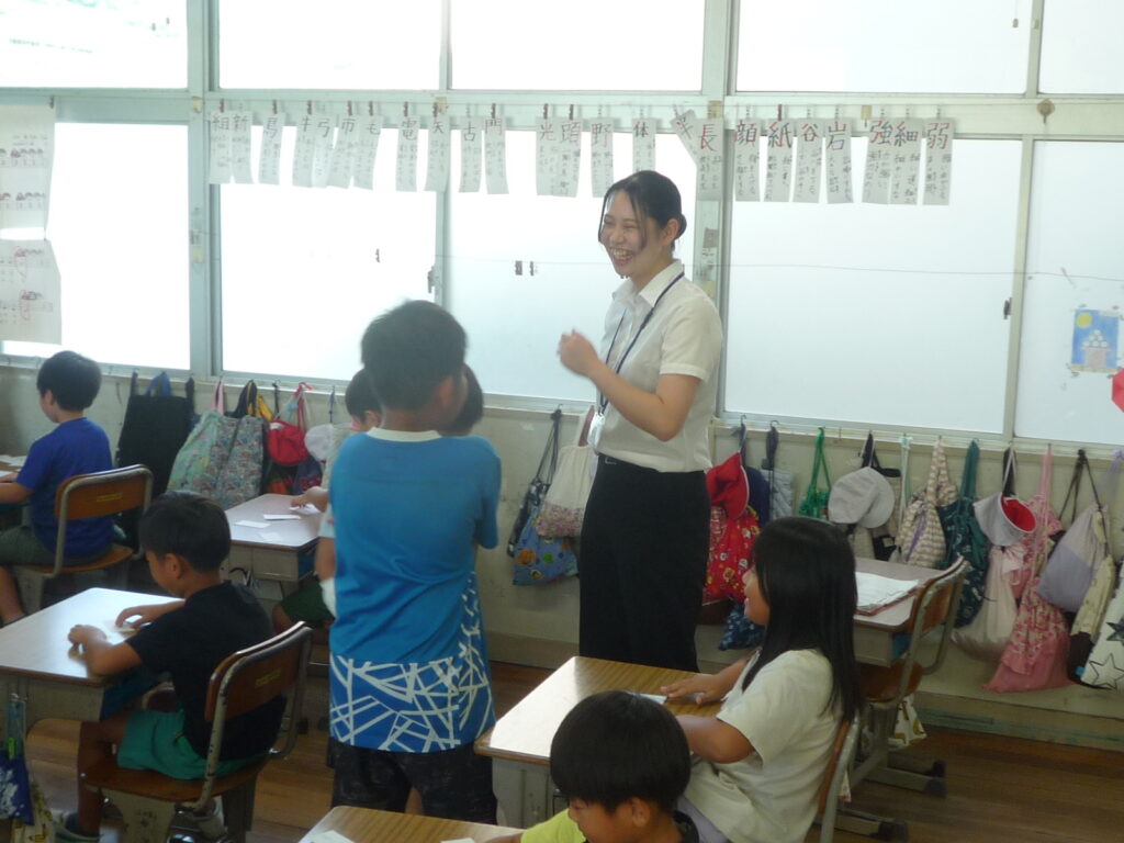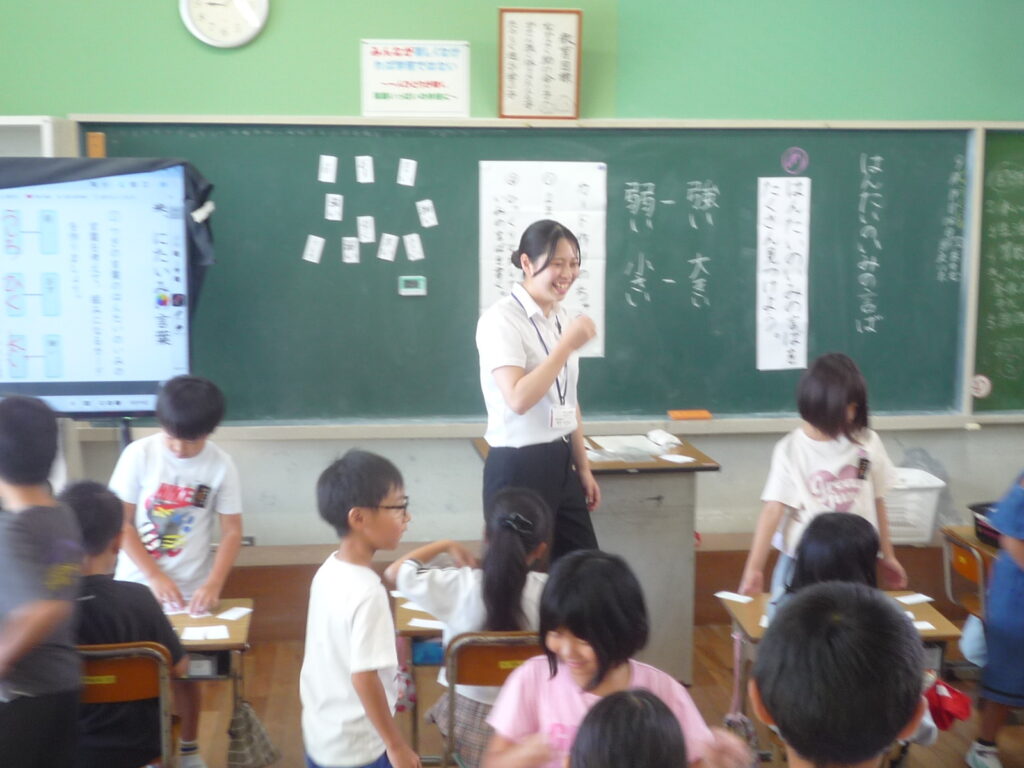長崎純心大学3年 新田みかん先生。9月1日からの教育実習もいよいよ残り僅か。毎日、笑顔で子ども達としっかりと向き合いがんばっています。回を重ねる度に授業の腕も上がっています。とても頼もしいです!