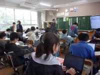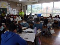 自分の経験を振り返りながら「心の世界」について考える文章の学習しています。筆者の意見や事例をまとめた表を生かして文章の要旨をつかむ時間でした。話し合いをもとに、大事なところに線を引いたり、原稿用紙やタブレット端末にまとめたりしながらそれぞれの学習進めました。