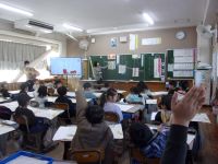 2年生が物語文の学習をしていました。登場人物の気持ちが分かる言葉をさがして変化を読み取りました。物語文の全文が印刷された通読シートに書き込みをしながら学習をしています。来週は、他校の先生方が研究授業を参観に来られる研究発表会が小野小で開かれます。