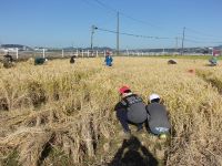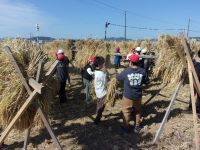 5年生が稲刈りを行いました。保護者、地域の方々の指導や支援をいただきながら、のこぎり鎌で次々と刈っていきました。束にして麻紐で結ぶことには苦戦しながらも干すところまでできました。このあと、脱穀、精米、餅つきと進んでいきます。米どころ小野ならではの学習に意欲的に取り組みました。