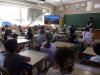 避難訓練を実施しました。非常連絡を聞いた児童は、教室で一旦机の下で身を守り、担任の指示に従って運動場に避難しました。全体では、「おさない・かけない・しゃべらない・もどらない」の合言葉を守ることができたかの振り返りを行いました。いつどこで起こるかわからない地震。家庭でも身の守り方、避難の仕方について話してみるようにと校長からの話もありました。教室に戻ってから動画を視聴して(写真)、安全な避難の仕方などについてみんなで考えました。非常時に生きる訓練です。