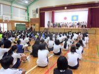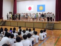 10月17日(金)に4年生が、小野小・中学校合唱祭に出演します。曲目は、「こころ天気になあれ」です。今日は、体育館でそのお披露目の集会がありました。4年生は、透明感のある歌声でみんなに元気を与える歌を披露することができました。また、聴いていた全校児童から大きな拍手が送られました。4年生には、自信をもってがんばってきてほしいと思います。