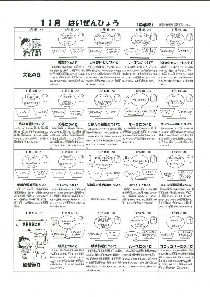 投稿者プロフィール 投稿者 最新の投稿 お知らせ2025年10月30日11月献立表および配膳表 お知らせ2025年10月30日令和7年度11月行事予定表 お知らせ2025年10月2日令和7年度10月行事予定表 お知らせ2025年9月29日10月献立表および配膳表
