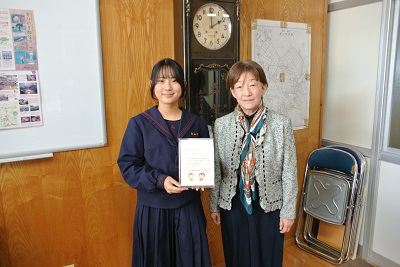 本校生徒が人権作文コンテストで優秀賞を受賞し、その表彰式を校長室で行いました。 投稿者プロフィール 管理者 最新の投稿 お知らせ2025年12月18日人権作文コンテスト表彰 イベント2025年12月18日調理実習 お知らせ2025年12月13日(12月)保健便り、食育便りを掲載しました イベント2025年12月5日花いっぱい運動