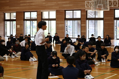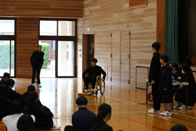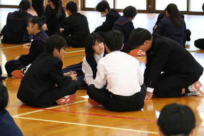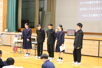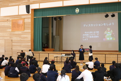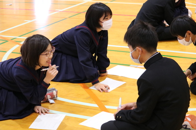 人権週間を前に、11月27日に人権集会を実施しました。今年度は、生徒会役員や生活環境委員会が中心になって企画・運営を行う生徒主体の人権集会でした。異学年でグループを作ってワークショップを行ったり、一緒に意見をまとめたりしてとても温かい雰囲気の集会になりました。この集会で学んだこと、感じたことを大切にしながら、人権を大切にする人に成長してほしいと思います。