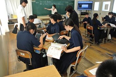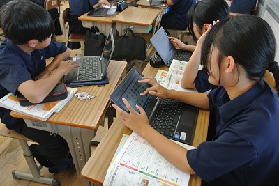 今回は家庭科の公開授業の様子です。デジタル教材を使ってバランスの良い献立の作りに挑戦しました。グループで協力しながら一日分の献立を作りました。みんな意欲的に課題に取り組んでいました。