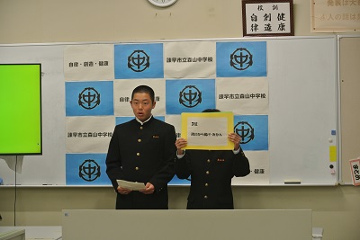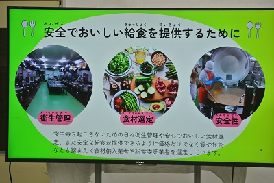 給食週間に合わせて、給食集会を実施しました。小中学生の給食を作っている給食センターの様子を知り、改めて給食のありがたさを感じました。最後には、給食センターの調理員さん、給食を運んでいただいている皆さんなど、給食に係る様々な方へ向けた感謝のメッセージを書きました。