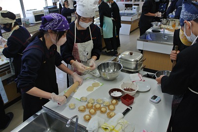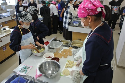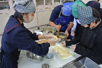 1年生が調理実習をしました。今回は饅頭を作りました。蒸し器を使った料理は経験がない生徒が多く、よい学びになりました。完成した饅頭はとてもおいしかったです。