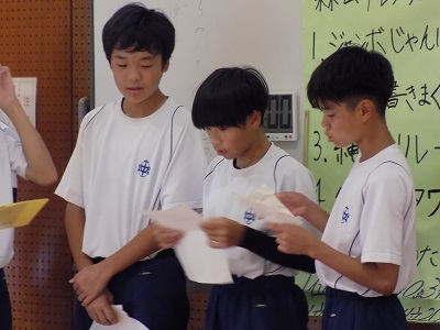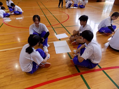 1年生が諫早青少年自然の家で、9月9日に野外体験学習を行いました。自然の中でのオリエンテーリングやフレイホールでのレクリエーションを通して、学年集団の絆を深め、主体的に行動する力を高めました。