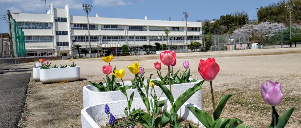 本校は諫早市の東部に位置し、周辺には長田川や五家原岳が広がる豊かな自然に囲まれた素晴らしい景観の中で、生徒たちが伸び伸びと学校生活を送れる環境があります。地域の方々も教育活動に協力的であり、現在、総合的な学習の時間に取り組んでいる長田地区名産の玉ねぎを活用した活動では、学校近くの畑を借用し、玉ねぎの栽培、育成から販売、また、玉ねぎを使った製品(玉ねぎジェラート)への取組も進んでいます。さらに、生徒が中心になったおにぎり食堂も開設しており、ここで使用するお米はすべて地域の方々に頂いた長田米です。地域の方々への感謝の心を忘れずに、これからも地域の方々のご協力をいただきながら、ともに学びを進めていきます。