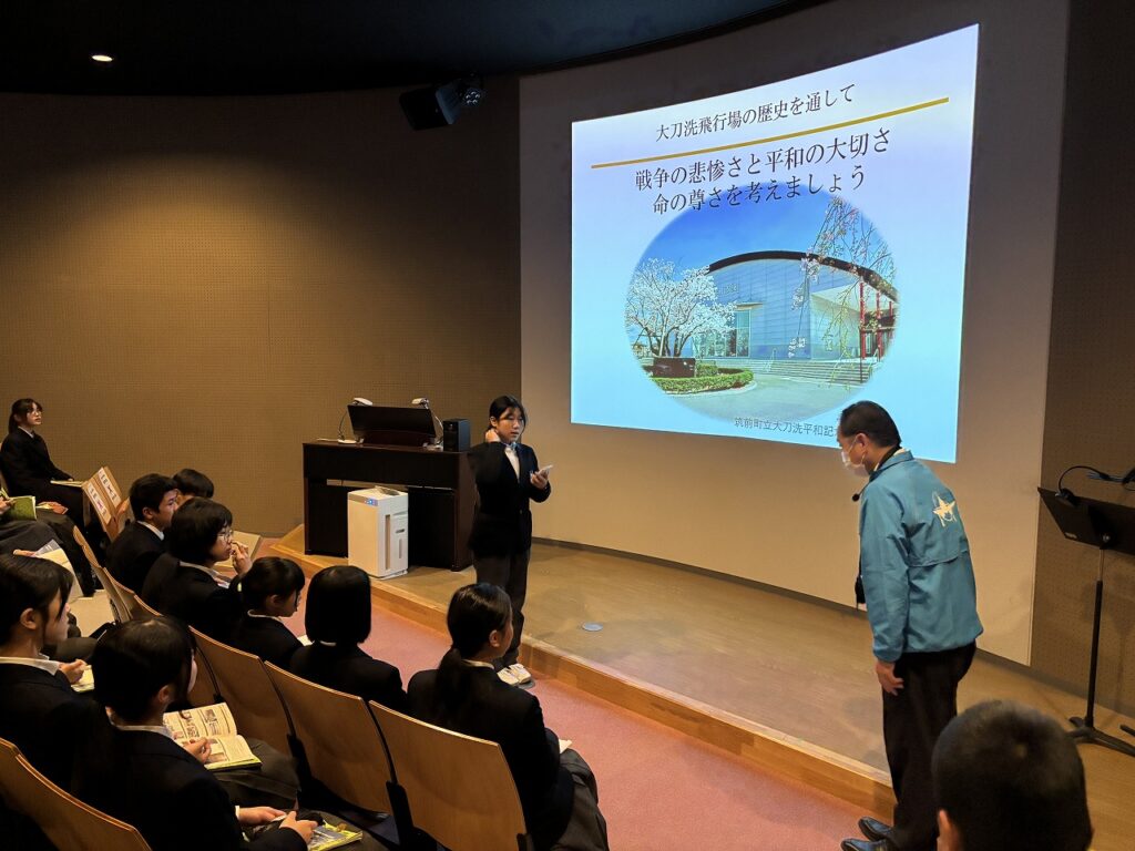 続いて大刀洗平和記念館を見学。展示資料や映像を通して、戦争の歴史と平和の大切さについて深く学びました。