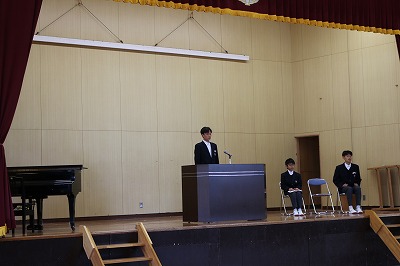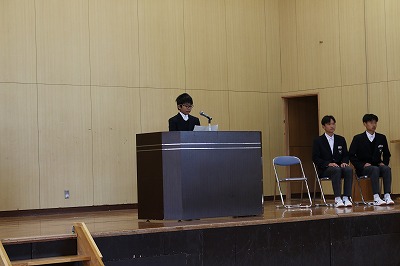 続いて行われた始業式では、各学年の生徒代表3名が、それぞれの抱負を堂々と発表しました。新年度への意欲と決意が感じられる、大変素晴らしい発表でした。