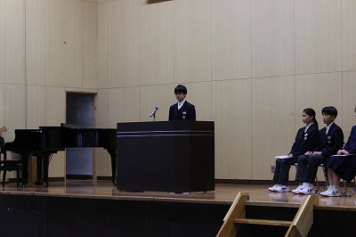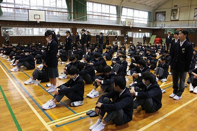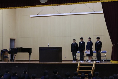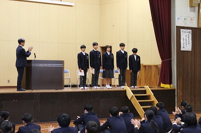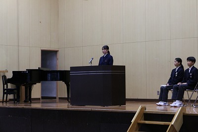 始業式では、各学年の代表生徒が3学期の抱負を述べました。また、校長先生からは新年の挨拶とともに、各学年の生徒へ向けたお話がありました。