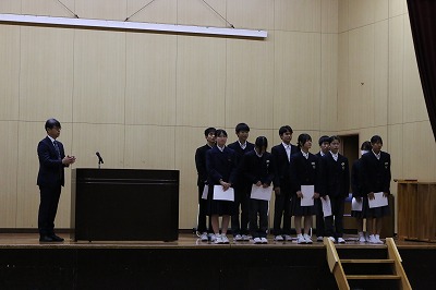 始業式の後には、新生徒会役員任命式、3学期総務委員任命式が行われ、新たな体制で3学期がスタートしました。
