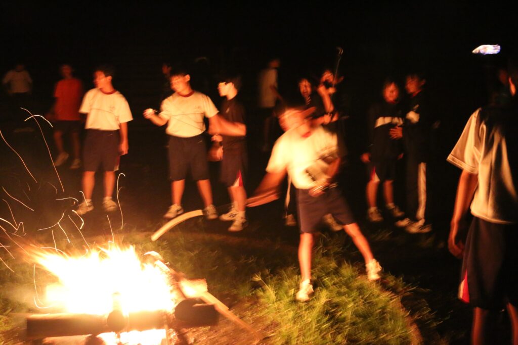 夕食後に実施したキャンプファイヤーでは星空の下、心温まる交流のひとときを持つことができました。 |