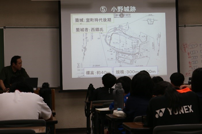 諫早市文化振興課の江口氏を講師に招き、小野の歴史についての郷土学習を実施しました。(この学習は、2学期後半から始まる地域の郷土学習へとつながります。) |